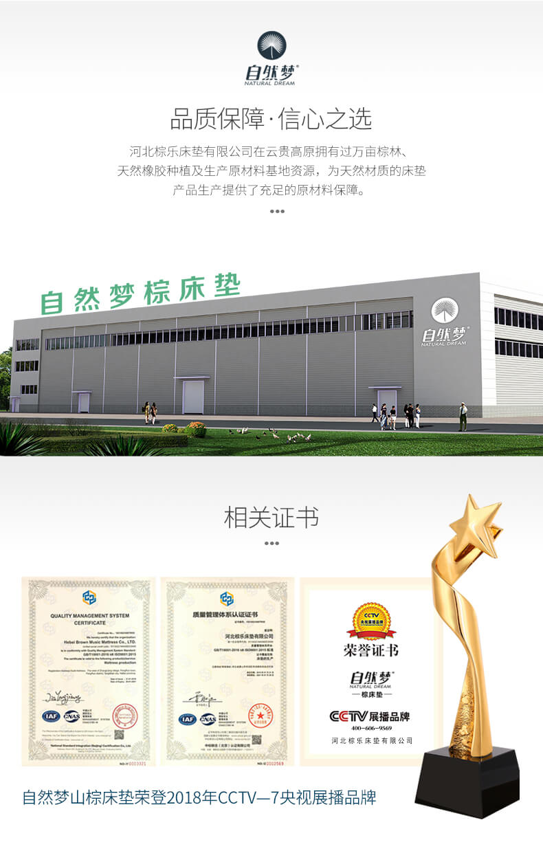 河北棕樂自然夢有限公司是一家生產(chǎn)銷售:山棕床墊、椰棕床墊的植物纖維彈性床墊企業(yè),擁有自動化生產(chǎn)工藝、標(biāo)準(zhǔn)化廠房,專業(yè)技術(shù)人員層層把控生產(chǎn)環(huán)節(jié),致力于為消費者打造強腰、護(hù)脊、易入睡的高品質(zhì)產(chǎn)品!