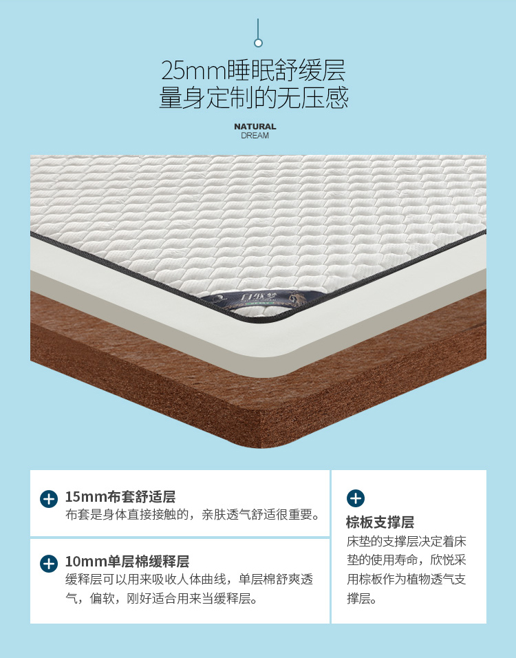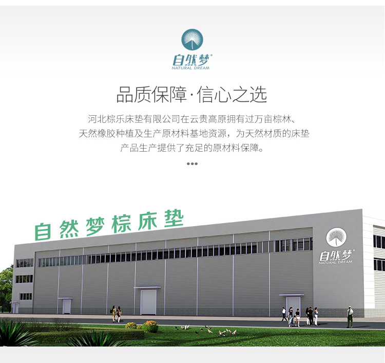 河北棕樂(lè)自然夢(mèng)有限公司是一家生產(chǎn)銷售:山棕床墊、椰棕床墊的植物纖維彈性床墊企業(yè),擁有自動(dòng)化生產(chǎn)工藝、標(biāo)準(zhǔn)化廠房,專業(yè)技術(shù)人員層層把控生產(chǎn)環(huán)節(jié),致力于為消費(fèi)者打造強(qiáng)腰、護(hù)脊、易入睡的高品質(zhì)產(chǎn)品!
