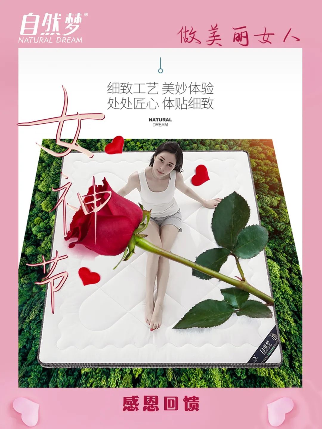 婦女節(jié)到了,自然夢(mèng)棕床墊祝愿你面如芙蓉,嬌艷美麗,容顏俏。富貴逼人,財(cái)源旺盛,荷包鼓。福如東海,壽比南山,萬(wàn)事順。婦女節(jié)快樂(lè)